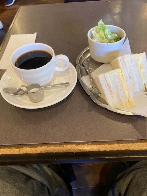 今日は、私がハムエッグのモーニングをホットコーヒーでいただき、家内がトーストのモーニングをホットコーヒーでいただきました。家内が国民民主党の街宣のボランティアしている間に私はサンドイッチのモーニングをコーヒー単体と同じ値段でしたので追加で頂きました。おいしかったです。